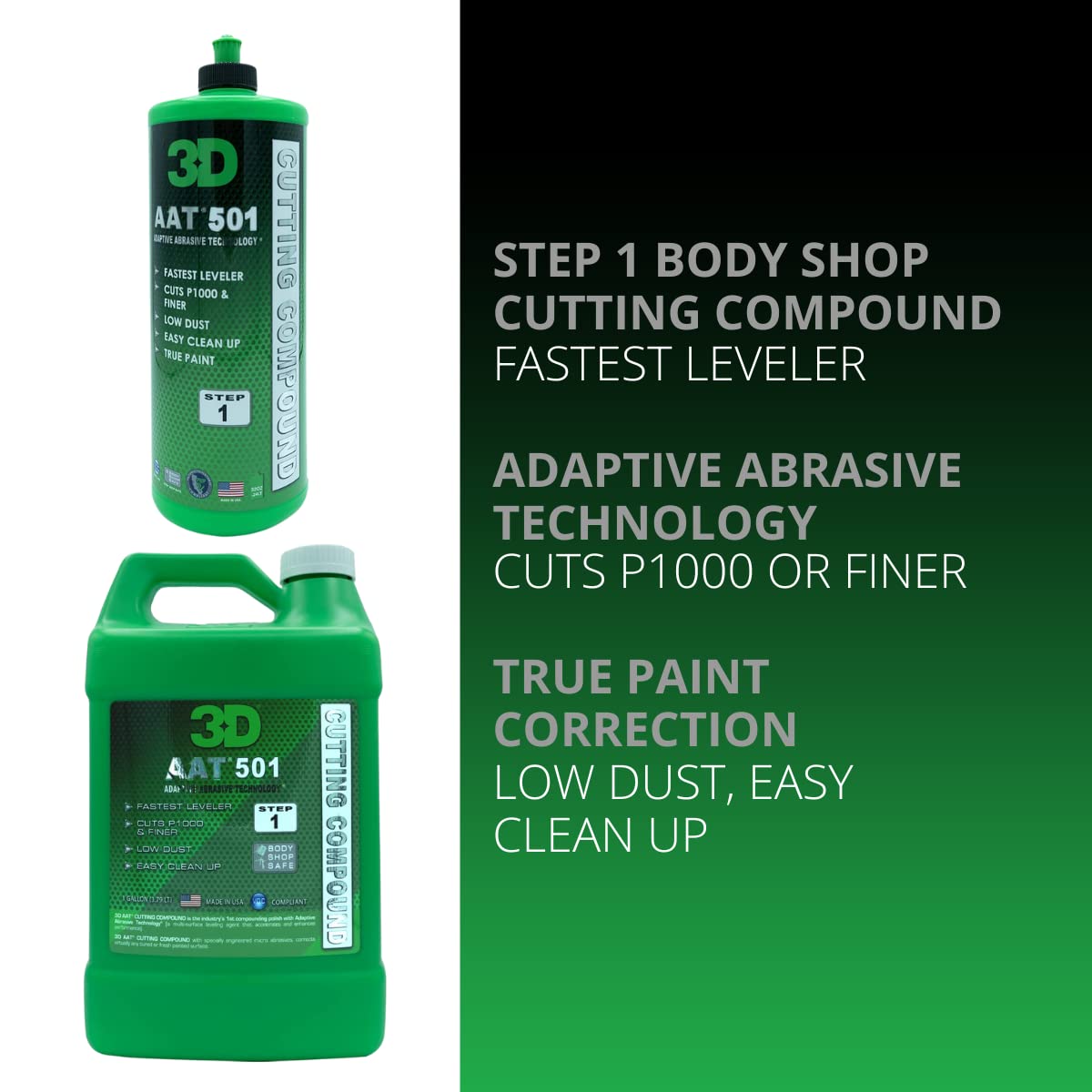 AAT Rubbing Compound is our entry level compound. While it’s our entry level compound and the price reflects this, it’s as good, and in most cases better, than any other brand of compound. If your shop is looking for an inexpensive fast cutting compound that works better than the usual suspects, then try 3D AAT 501 Cutting Compound.